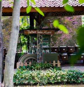 - Rumah kayu panggung sebagai tempat kedai sehat.