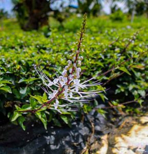 Tanaman kumis kucing diduga berasal dari Afrika Tropis yang kemudian menyebar ke wilayah Asia dan Australia. Tanaman ini dikenal dengan berbagai nama. Di Indonesia, kumis kucing dikenal dengan nama remujang (Jawa), sesalaseyan atau soengotkoceng (Madura), dan giri-giri marah (Sumatera). Nama asing untuk kumis kucing adalah mao xu cao (Cina) dan kidney tea plants/java tea (Inggris).