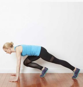 Mountain climber merupakan salah satu jenis gerakan cardio yang bermanfaat untuk menyehatkan jantung kita. Gerakan ini seperti gerakan lari tetapi posisi tubuh kita menghadap ke lantai.