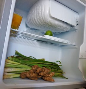 Selain bahan rempah, ada juga bahan jamu yang berupa dedaunan, seperti daun jeruk, salam, pandan dan serai. Area simpan bahan ini harus jauh dari kompor, karena jika sampai terpapar panas kompor, bahan akan mudah layu, berubah bentuk dan warnanya. Sebaiknya bahan ini disimpan di dalam kulkas dan dicuci bersih sebelumnya agar bakteri tak menyebar. Sedangkan jeruk nipis dan jenis jeruk lainnya bisa juga disimpannya di kulkas maupun diluar